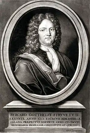 Burkhard Gotthelf Struve (26 May 1671 - 25 May 1738) was a scholarly German librarian who became a polymath-historian based, for most of his academic career, at the University of Jena.[1][2]