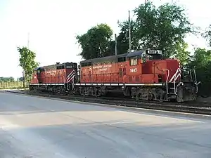 The Burlington Junction Railway (reporting mark BJRY) is a Class III short line railroad which was chartered in 1985.[1] Originally operating on the southernmost 3 miles (4.8 km) of the former Burlington, Cedar Rapids and Northern Railway mainline in Burlington, Iowa after abandonment by the Chicago, Rock Island and Pacific Railroad, it provides short freight hauling, switching operations, locomotive repair, and transloading services, the latter currently handling over 3,000 carloads a year. Typical commodity types transported include chemicals and fertilizer. The BJRY's primary interchange partner is the BNSF Railway.[2]