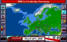Each city has an "infobox" which pops up either when the player flies into the city, or when the player clicks on the city in the pointer mode. The infoboxes contain varied interesting information about the city, from famous people from there to who founded it, and have an underlined feature such as a monument or attraction present in that city.