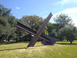 Bygones is an outdoor 1976 sculpture by Mark di Suvero, installed at Houston's Menil Collection, in the U.S. state of Texas. The abstract, geometric sculpture is made of Cor-ten beams and a milled steel plate, and measures 25 ft. 11 in. x 31 ft. 6 in. x 14 ft. 2 in.[1][2]