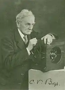 Sir Charles Vernon Boys, FRS[2] (15 March 1855 – 30 March 1944) was a British physicist, known for his careful and innovative experimental work in the fields of thermodynamics and high-speed photography, and as a popular science communicator through his books, inventions, and his public lectures for children.[1][3]
