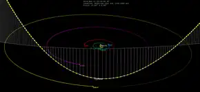 ![]() Comet's trajectory through the Solar System, with 30-day motion markers | |