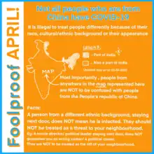 - ↑ "Report COVID-19 Related Harassment, Discrimination, and Bigotry". A3PCON. March 2020. Archived from the original on 23 March 2020. Retrieved 23 March 2020.