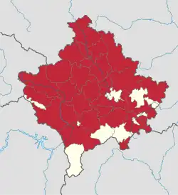 On 7 April, five new cases are confirmed, five correctional officers and a health worker at the Detention Center in North Mitrovica were tested positive for coronavirus.[60] A few minutes later, a 65-year-old man from Ferizaj died of cardiac arrest, but also was tested positive with coronavirus.[61] Another three new cases of coronavirus were confirmed that same day, one in critical condition from Ferizaj, one from Mališevo, one from Kosovo's capital, Pristina, one from Gjilan and one laboratory technician from Gjakova.[62] A few hours later, six cases with coronavirus have been cured and 19 other cases have been infected, infected are eight from village Smrekonicë of Vučitrn, four from Mališevo,[a] three from Kosovo's capital, Pristina, one from Gjakova, one from Gjilan, one from village Sazli of Ferizaj and one from village Ujmirë of Klina.[63]
