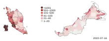 ![]() Distribution map of COVID-19 active cases by district as of July 2022 | |