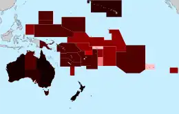![]() Map of the COVID-19 pandemic in Oceania (as of 22 July 2022)