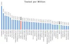 As per the Health Department, 88% of the patients are asymptomatic while 84% of deaths were among those with co-morbidities.[1][2] In June, the state saw a surge in deaths with 209 deaths (36% of the state's recorded deaths) occurring between 11 and 16 June 2020.[3] Another large local cluster in Koyambedu of Chennai was identified in May 2020.[4]