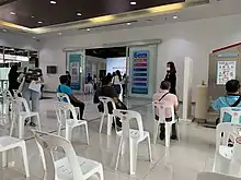 In mid-December, an outbreak occurred in Samut Sakhon, just southwest of Bangkok, increasing the country's total confirmed cases by at least 20%.[45] Cases in the province, which is the center of the country's fishing industry, primarily impacted migrant workers from Myanmar,[45] a major source of labour in the seafood industry.[46] Over 1,300 cases were traced to a seafood market in Samut Sakhon, as cases were detected in 27 provinces.[47] Before the surge, Thailand had recorded about 4,300 COVID-19 cases and just 60 deaths, while Myanmar had registered about 117,000 cases.[46] The 576 cases reported on 20 December was Thailand's biggest daily increase and caused the nation's overall total to climb 13%.[48] A new cluster emerged in Rayong, linked to a gambling den. On 28 December, a worker at the den died, Thailand's first COVID-19 death in nearly two months.[49][50] With the clusters starting to spread into Bangkok, the Bangkok Metropolitan Administration announced that the city would close schools and daycare centres 4–17 January 2021.[51] Soon after, the Ministry of Education ordered all schools closed for the month of January.[52]