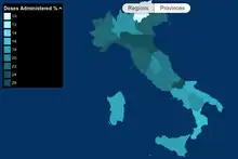 On 10 January 2021, the Campania region in Italy had the highest percentage of administration compared to the doses possessed. It also claimed to have exhausted the stock.[16][17]