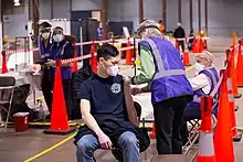 Free items included beer, pizza, crawfish, donuts, and french fries.[94][95][96] Some sports teams established partnerships to offer vaccine clinics at their venues on game days, with free tickets to games offered to those who use the clinics.[97][98] Free cannabis was available in Washington State when getting a vaccine at a dispensary.[99]