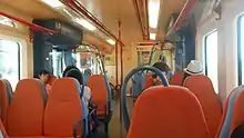 Interior of a CP 2240 EMU, showing the 2+3 seating layout.