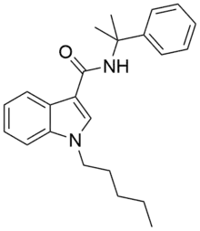 CUMYL-PICA (SGT-56) is an indole-3-carboxamide based synthetic cannabinoid. It is the α,α-dimethylbenzyl analogue of SDB-006.[1] It was briefly sold in New Zealand during 2013 as an ingredient of at the time legal synthetic cannabis products, but the product containing CUMYL-BICA and CUMYL-PICA was denied an interim licensing approval under the Psychoactive Substances regulatory scheme, due to reports of adverse events in consumers.[2] CUMYL-PICA acts as an agonist for the cannabinoid receptors, with Ki values of 59.21 nM at CB1 and 136.38 nM at CB2 and EC50 values of 11.98 nM at CB1 and 16.2 nM at CB2.[3][4]