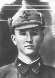 Having been fighting on the frontlines against the German invasion of the Soviet Union since the first day of the war, he saw action on the Southwestern, Stalingrad, Don, 3rd Ukrainian, and 2nd Ukrainian fronts. Wounded in action for the first time on 3 September 1941, he soon returned to combat, and went on to join the 610th Rifle Regiment upon its formation in March 1942. There he quickly rose up through the ranks, becoming commander of a platoon of machine gunners, and by 1943 he held the rank of captain and was in command of a battalion within the regiment. On the night of 13-14 May 1944 he led an offensive charge that resulted in the capture of two lines of trenches and elimination of the German bridgehead on that part of the Dniester river in the Dorotskoye area. Later from 14 to 21 May they faced a barrage of German counterattacks that left them encircled, but Topçı refused to retreat despite being cut off from supply reinforcements, and went on to lead his battalion in repulsing the multiple daily attacks. They then broke through the encirclement on the night of 20-21 May, taking out four anti-tank guns, two armored personnel carriers, six vehicles and an estimated 60 enemy soldiers in the process. Before the battle went down, he carefully instructed his subordinates on ways to move quickly in difficult terrain and select idea firing position, to the admiration of his regiment commander. For his skillful leadership and ingenuity in the battle he was nominated for the title Hero of the Soviet Union for the first time; the nomination sheet also noted that he voluntarily chose to continue fighting despite having been injured on six separate occasions resulting in wounds that would allow him to be exempt from further military service. Nevertheless, he went on to continue to distinguish himself in combat, leading a successful attack on retreating enemy forces in Hungary that resulted in the deaths of an estimated 200 Axis soldiers, capture of ten Hungarian officers, as well as the seizure of a large quantity of enemy military equipment, consisting of approximately 400 rifles, 36 mortars, 280 horses, six cars, three motorcycles, among other equipment.[3][4][5][6]