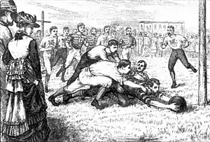 Scene of a rugby match at the CFC ground in Calcutta, c.1875 (from The Illustrated London News).