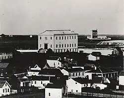 A Vallejo wooden two-story building served as the California State Capitol from May 4, 1852, to February 4, 1853. The building had a half set basement and was located at 300 York Street, Vallejo. General Mariano Guadalupe Vallejo (1807-1890) offered the site to the State after the wooden Sacramento California State Capitol building in the Sacramento First Courthouse burnt to the ground in large fire on July 13, 1854.[3]