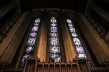 The second artisan in Pittsburgh significant to Calvary's stained glass was Charles J. Connick (1875-1945). Connick originally worked under Willet at the Pittsburgh Stained Glass Company. He, having studied with Willet, was also a leader in the recreation of medieval stained glass techniques. Some of his best work is located in Pittsburgh, including Calvary Episcopal Church, where there are fourteen major windows plus sixteen lantern tower and twelve chancel clerestory windows by him in the church. Connick also designed several other windows located throughout the building.[4]