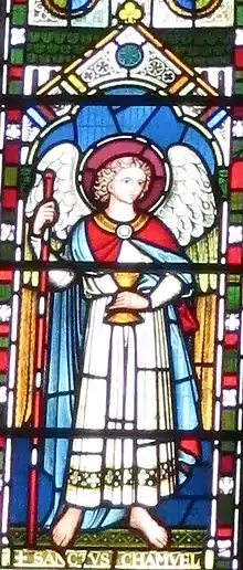 ![]() Sanctus Chamuel, stained-glass window at St Michael's Church, Brighton, England. | |