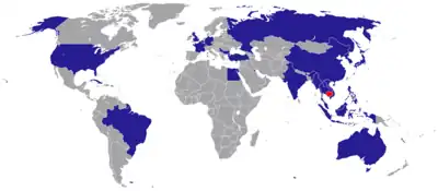 1. 1 2 3 4 5 6 7 8 9 10 11 12 13 14 15 16 17 18 19 20 21 22 23 24 25 26 27 28 29 30 31 32 33 34 35 36 37 38 39 40 41 42 43 44 "Cambodia Mission Abroad". Ministry of Foreign Affairs & International Cooperation of Cambodia. Retrieved 2 November 2023.
