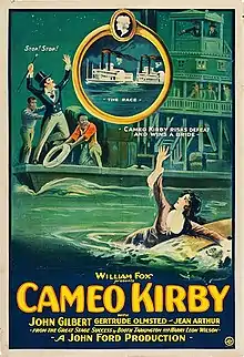 Cameo Kirby is a 1923 American silent drama film directed by John Ford which starred John Gilbert and Gertrude Olmstead and featuring Jean Arthur in her onscreen debut. It was Ford's first film credited as John Ford instead of Jack Ford.[1] The film is based on a 1908 play by Booth Tarkington and Harry Leon Wilson. The story had been filmed as a silent before in 1914 with Dustin Farnum, who had originated the role on Broadway in 1909. The film was remade as a talking musical film in 1930.