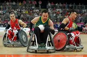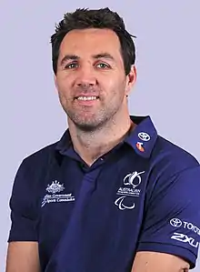 He first competed in wheelchair rugby in 2003 and was selected for Australia in 2005.[4][5] He won a silver medal at the 2008 Beijing Paralympics and a gold medal at the 2012 London Paralympics.[6] He was a member of the Steelers team that won silver medal at the 2010 World Wheelchair Rugby Championships in Vancouver and a gold medal at the 2014 World Championships in Odense,[7] and the team that retained its gold medal at the 2016 Rio Paralympics after defeating the United States 59–58 in the final.[8]