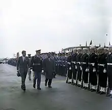 When French Cameroon became independent as the Republic of Cameroon in early 1960, it established formal diplomatic relations with the U.S.[4] In 1961, the U.S. upgraded the Yaoundé consulate to an embassy, later with an outpost in Douala, while Cameroon established an embassy in Washington, D.C., and a permanent mission to the UN in New York.[3] Early bilateral relations, however, were strained: the U.S. declined to support Cameroon's objections to the union of British-administered Northern Cameroons with the new Republic of Nigeria; and Cameroon was offended by the U.S.'s request that it recall its ambassador, Raymond Aimé-N’Thepe, because he was an "anti-white racist" and had "threatened a fencing contractor with a gun".[3] However, in January 1961, Cameroonian President Ahidjo wrote to congratulate John F. Kennedy on his inauguration as U.S. President, expressing hopes for a stronger bilateral relationship, and relations improved considerably after Kennedy received Ahidjo on a five-day official visit in March 1962.[1] In July the next year, U.S. Assistant Secretary of State for African Affairs, Mennen Williams, visited Cameroon to reaffirm the countries' "positive relations".[3] Between 1962 and 1967, Ahidjo visited the U.S. five times, and further visits followed, including in 1969 and 1971. Over the course of his presidency, he was received not only by Kennedy but also by four of his successors, Presidents Lyndon B. Johnson, Richard Nixon, Jimmy Carter, and Ronald Reagan.[1]