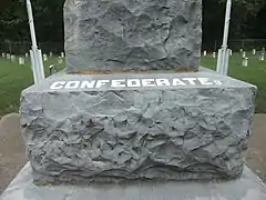 In 1905, Confederate veterans located 429 graves and reinterred the remains on land donated for a cemetery near the original camp site. They placed 429 limestone markers, all marked "Unknown Soldier CSA", and erected a 12-foot obelisk to memorialize those buried here. Improperly maintained after the death of the last Civil War Veterans, the site was ultimately overtaken by forest undergrowth.[2][3]