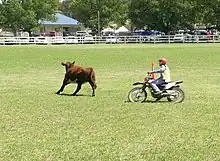 The Warwick Gold Cup is one of the premier events on Australia's campdraft calendar where around 1,800 camp drafters compete for prize money over about four days of competition.[3] Paradise Lagoons in Queensland is the venue of the richest campdraft in Australia with A$230,000 of prize money distributed over the four days of competition. The Acton Super Beef Open Campdraft has prize money of $80,000. This event, alone attracted 605 entries, which was conducted with two rounds and a final.[4] The Queensland Triple Crown of campdrafting consists of the Condamine Bell, Chinchilla Grandfather Clock and Warwick Gold Cup campdrafts.[5] Walcha, New South Wales has held the National titles on several occasions as the district is one of the few able to supply the quantities of quality cattle needed for these big events.