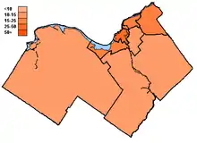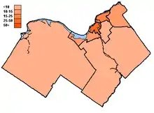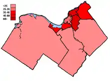 • Note, this data is a total for all ridings within the city, plus the portions of ridings that extend outside the city, that are located within Ottawa (Cumberland in Glengarry—Prescott—Russell and all of Carleton—Mississippi Mills except Mississippi Mills). Data within these split ridings does not include votes from people residing outside the riding (prisoners, members or the Canadian forces, or for temporary reasons), or by people voting in mobile polls or by means of special ballots.