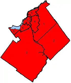 Map of the region's ridings in 1980. Colours show the result from the 1980 election