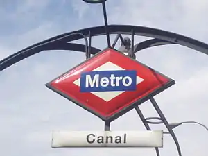 Canal [kaˈnal] is a station on Line 2 and Line 7 of the Madrid Metro. It is located in fare Zone A.[1][2]