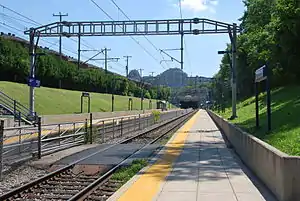 Canora station platform before reconstruction, looking east towards the portal of the Mount Royal Tunnel