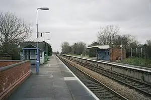 - 1 2 3 Butt, R. V. J. (October 1995). The Directory of Railway Stations: details every public and private passenger station, halt, platform and stopping place, past and present (1st ed.). Sparkford: Patrick Stephens Ltd. p. 53. ISBN 978-1-85260-508-7. OCLC 60251199. OL 11956311M.