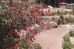 Cantua buxifolia, (/ˈkæntjuə bʌksɪˈfoʊliə/, Hispanicized spellings cantuta, cantu), known as qantu, qantus or qantuta (Quechua,[1]) is a flowering plant found in the high valleys of the Yungas of the Andes mountains in western South America. Also known as the Peruvian magic tree,[2] it is an evergreen shrub growing to 4 m (13 ft) tall by 2.5 m (8.2 ft) wide with small leaves and clusters of brilliant pink, narrow tubular flowers in early spring.