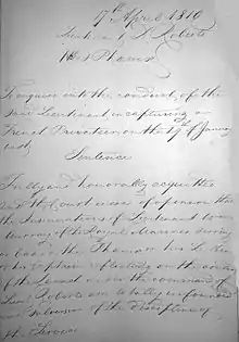 17 May 1810 Court Martial accusations discharged, his behavior was considered worthy and honorable[10]