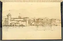 In 1857, when Edward Trelawny was preparing to publish his Recollections of the last days of Shelley and Byron, he asked Roberts to make a sketch of Casa Magni, where Shelley had been living at the time of his drowning. Trelawny not only included Robert's sketch, he published a number of extracts from Robert's letters.[7] Roberts was to live another eleven years. He died on his 80th birthday, 18 February 1869 at 3:00 in the afternoon. No details can be found as to the cause of his death.
