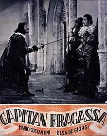 Captain Fracasse (Italian: Capitan Fracassa) is a 1940 Italian historical adventure film directed by Duilio Coletti and starring Elsa De Giorgi, Giorgio Costantini and Osvaldo Valenti. It was made at the Cinecittà studios in Rome. The film is based on the 1863 novel of the same name by Théophile Gautier.[1] Another adaptation Captain Fracasse was made three years later as a co-production between France and Italy.
