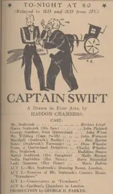 Captain Swift is a 1888 stage play by Australian author C. Haddon Chambers. It was turned into a 1920 film Captain Swift and adapted for radio. The play was one of the first plays by an Australian with Australian characters to achieve success overseas.[1]