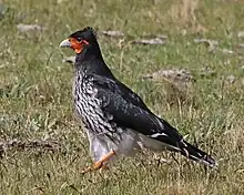 Caracaras are birds of prey in the family Falconidae. They are traditionally placed in subfamily Polyborinae with the forest falcons,[1] but are sometimes considered to constitute their own subfamily, Caracarinae,[2] or classified as members of the true falcon subfamily, Falconinae.[3] Caracaras are principally birds of South and Central America, just reaching the southern United States.