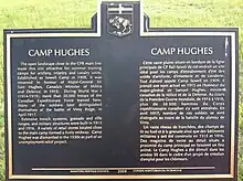 There is a roadside park named "Camp Hughes Wayside Park" located 13 kilometres (8.1 mi) west of Carberry on the Trans Canada Highway near the west intersection with PR 351, a short distance north of the actual Camp Hughes site, named in honour of the military camp.