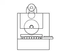 Saws with horizontal or tilted slides have an open loop force flow (fig.2) and maintain any lost motion and compliance of the feed system.[8]