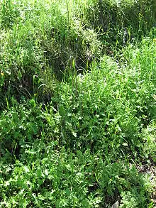 Mechanical methods can be effective but must be done before the plant sets seed. Additionally, the root must be severed at least 4 inches (10 cm) below the ground to prevent the plant from regenerating.[8] Mowing and slashing are not reliable as the plant is able to regrow and produce seed even at a height of 3 inches (7.6 cm).[5][10]