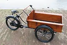 The term "bakfiets" (which means "box bike" in Dutch; plural is "bakfietsen") is also used to describe this style of bicycle.[9]