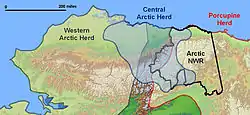 48. 1 2 3 4 Russell, Don; Gunn, Anne (February 3, 2019). "Vulnerability analysis of the Porcupine Caribou Herd to potential development of the 1002 lands in the Arctic National Wildlife Refuge, Alaska" (PDF). Shadow Lake Environmental, Environment Yukon, Environment and Climate Change Canada, and NWT Environment and Natural Resources: 144. Archived (PDF) from the original on June 19, 2019. Retrieved September 4, 2019.