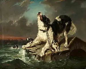 He soon became famous for his animal paintings and was commissioned to do equestrian portraits of King Karl XIV Johan, then-Prince Karl XV and Napoleon III. He also exhibited at the Salon in 1844 and 1846. His most often reproduced painting is Översvämningen (The Flood), which depicts a dog, clinging to wreckage, while her puppies swim there to safety. Later, he was named a member of the Royal Swedish Academy of Arts and court painter.