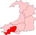 Carmarthen West and South Pembrokeshire shown within the Mid and West Wales electoral region and the region shown within Wales