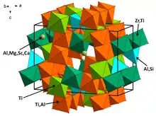 Carmeltazite is a rare oxide mineral. Its first discovery on Earth was announced in 2019, after it was found in Zebulun Valley in Israel.[1][2] The chemical formula for carmeltazite is ZrAl2Ti4O11.[3]