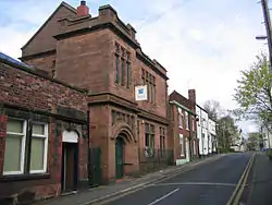 Runcorn Free Public Library was established in 1882 under the provisions of the Public Libraries Act 1855.[8] The Act was adopted by a large majority at a public meeting held on the 19 December 1881. The library was opened 6 July 1882 with great ceremony by James Picton, Chairman of the Liverpool Free Library Committee. Picton was presented with a silver key supplied by Messrs. Handley and Beck. The library was furnished with the stock and bookcases transferred from the Runcorn Literary and Mechanics' Institute. It was housed in the boardroom of the Runcorn Improvement Commissioners at the Town Hall in Bridge Street, which was seen as a temporary arrangement until a permanent location was found.[9]