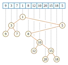 - 1 2 In some references, the ordering of the numbers is reversed, so the root node instead holds the maximum value and the tree has the max-heap property rather than the min-heap property.