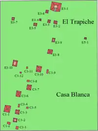 Casa Blanca is a pre-Columbian Maya archeological site in Chalchuapa, El Salvador. The site possesses several pyramids dating to the Late Preclassic period (500 BC – AD 250) and the Classic period (AD 250–900). This ruin is part of the Chalchuapa archaeological zone and displays influences from the Olmecs and from Teotihuacan. It is closely related to the ruins of Tazumal and San Andrés. The government purchased the park in 1977 and it was given the name of the coffee plantation upon which it was situated. There are many pyramids at Casa Blanca but only two have been partially restored. Casa Blanca is located in the department of Santa Ana. Casa Blanca has been closed to the public and is undergoing restoration work; it has a site museum with exhibits that include Maya ceramics and other artifacts.