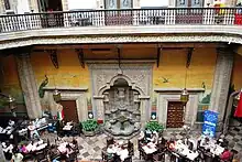 The colonial Baroque[10] fountain of the palace, and the Sanborns restaurant